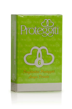 I preservativi PROTEGGITI sono prodotti in lattice di gomma naturale, resistenti e di dimensioni standard: lunghezza nominale 185mm, larghezza 52mm +/- 2mm, spessore +/- 00,1mm. Sono inoltre ben lubrificati, testati elettronicamente con uno standard qualitativo molto alto e sigillati singolarmente in cialde quadrate monouso. I preservativi ritardanti PROTEGGITI sono adatti come contraccettivi e proteggono dalle malattie sessualmente trasmissibili.