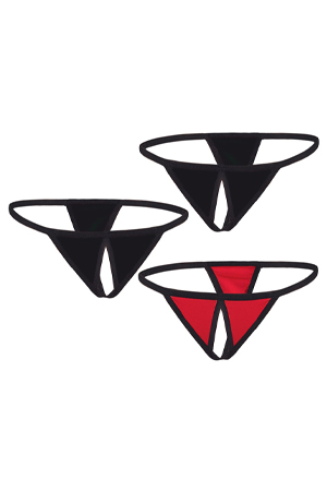 1 string rosso. 2 string neri. 3 pezzi set. Apertura inguinale. Taglia: Unica. Colore: Colori vari. Materiale: Poliammide/Elastame.